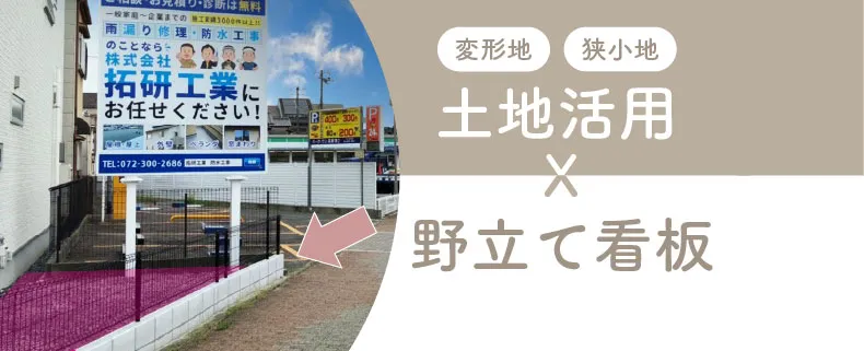 【店舗位置の認知】【商圏エリアの拡大】【会社や商品のブランディング】など、野立て看板にはあらゆる効果がありますが、